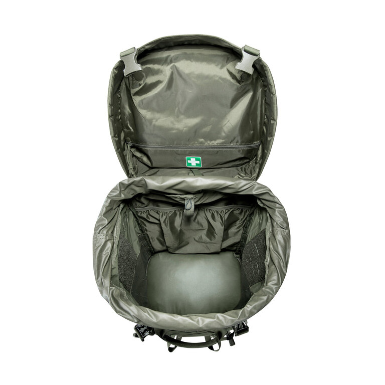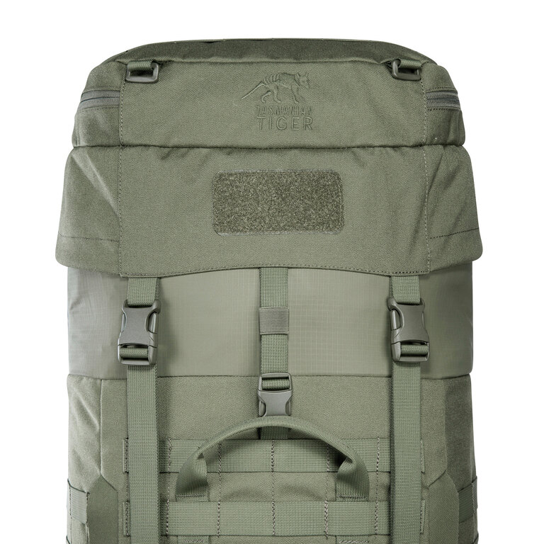 Základní objem batohu Base Pack 60 FO Tasmanian Tiger 60 litrů přizpůsobíte podle situace díky rolovacímu límci, který zvyšuje kapacitu až na 75 litrů. Víko je výškově nastavitelné a v případě potřeby ho lze úplně odejmout. Uzavření ve více polohách pomáhá přizpůsobit batoh aktuálnímu zatížení a udržet obsah stabilní.