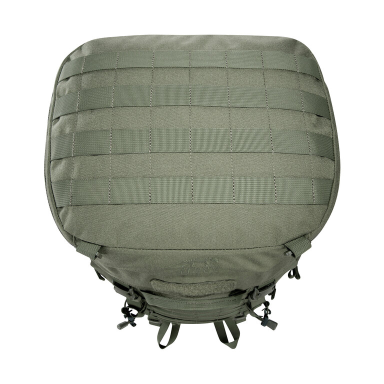 Přední i boční strany jsou vybavené MOLLE systémem, který umožňuje připevnit další výbavu podle potřeby. Stejný systém je i na víku, takže prostor můžete dál rozšiřovat. Batoh je kompatibilní také s hydratačním vakem. Povrchová úprava bez PFC/PFAS pomáhá chránit obsah proti vlhkosti.
