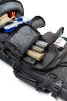 Na batohu naleznete kapsy, do kterých vložíte zásobníky. Oceníte i kapsu na drobnější předměty a rozhodně využijete největší kapsu, do které můžete umístit i kufřík s krátkou zbraní. Největší kapsa je vybavená přehlednými přihrádkami, takže nic nevypadne. Zároveň se dá otevřít celá, nebo jen z půlky.