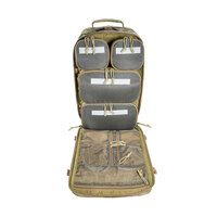 Přední komora nabízí čtyři odnímatelné kapsy na suchý zip a ploché kapsy ve víku, kam můžete uložit dokumenty nebo drobnosti. Zadní komora má velkou plochu na suchý zip a MOLLE lišty pro individuální přizpůsobení vnitřního prostoru podle aktuální výbavy.