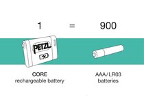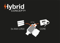 Součástí balení je dobíjecí akumulátor CORE, ale díky technologii HYBRID CONCEPT lze použít i tři AAA baterie. Čelovka automaticky rozpozná zdroj energie a upraví výkon. Při použití klasických baterií nabízí nižší světelný tok, ale delší výdrž. Toto řešení se hodí při delších akcích, kde není vždy možnost dobíjení.