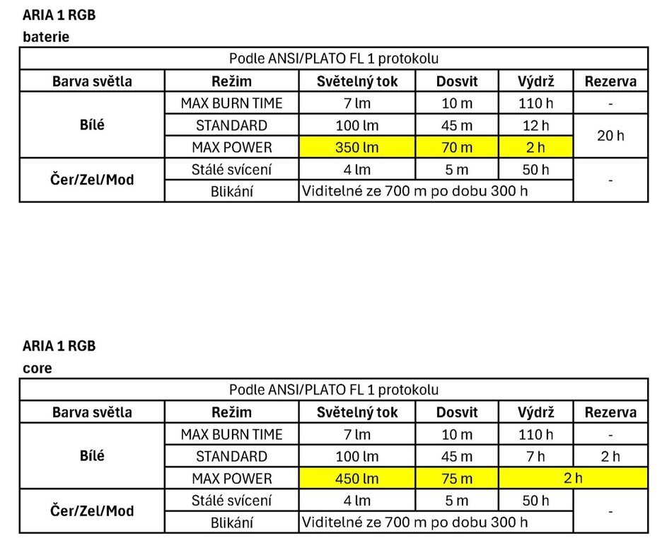Aria 1R RGB používá široký a rovnoměrný kužel světla, který dobře osvítí prostor před uživatelem bez ostrých přechodů. To ocení každý při práci na krátkou vzdálenost, kdy je potřeba mít přehled o detailech. K dispozici jsou tři režimy bílého světla, které umožňují volit mezi delší výdrží nebo vyšším výkonem podle aktuální potřeby.