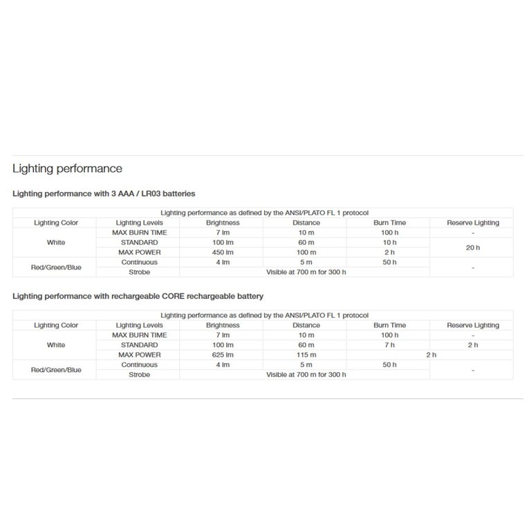 Čelovka je dodávána se třemi AAA bateriemi a je kompatibilní s dobíjecím akumulátorem CORE. Díky technologii HYBRID CONCEPT rozpozná zdroj energie a upraví výkon. S akumulátorem CORE poskytuje vyšší světelný tok po celou dobu používání.