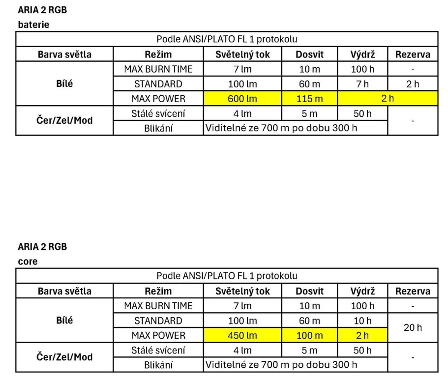 Aria 2R RGB používá široký a rovnoměrný kužel světla, který dobře pokrývá prostor před uživatelem. To ocení každý při práci na krátkou vzdálenost i při pohybu v terénu. Tři režimy bílého světla umožňují volit mezi maximální dobou svícení, vyváženým režimem a maximálním výkonem podle aktuální potřeby.