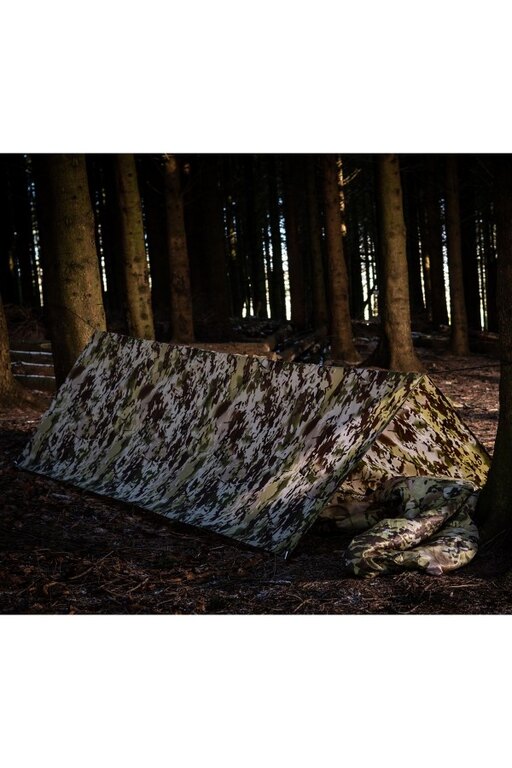 Tato všestranná celta je vyvedena v decentní, zelené barvě, takže je skutečně nenápadná v terénu. Kromě toho jsou součástí balení také čtyři rozšiřitelné šňůry (tzv. guy-lines). Celtu můžete zavěsit mezi stromy, ale s využitím běžného vybavení, jako jsou turistické hole, ji klidně můžete využít také jako samostatný přístřešek. Ale vytvořit z ní lze i nouzová nosítka.