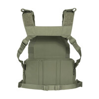 Díky konstrukci lze chest rig (taktickou vestu) připojit jako přední panel k plate carrieru nebo použít samostatně. Přední klopa umožňuje vložení balistického panelu (SAPI až velikost M), čímž rozšiřuje možnosti použití.