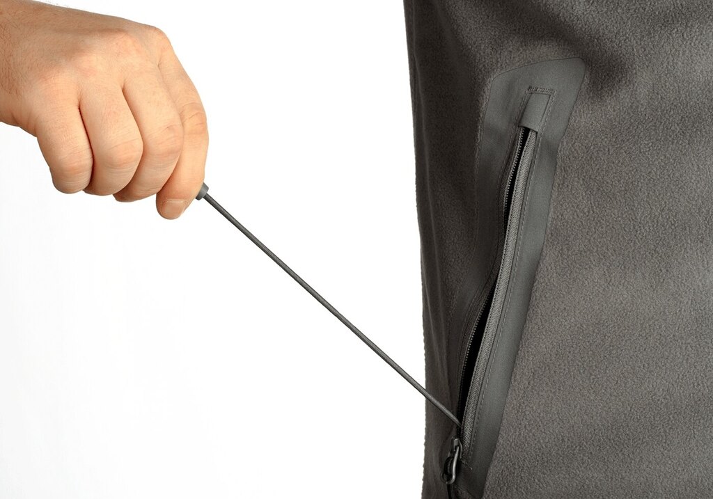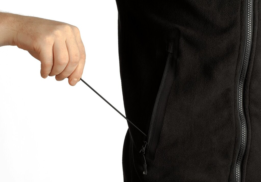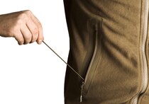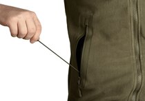 Zapínání na celopropínací zip umožňuje rychlou regulaci tepla. Límec lze nosit rozepnutý nebo zapnutý do stojáčku pro lepší ochranu proti větru a prachu. Tvarovaná kapuce přidává další tepelný komfort, když se počasí zhorší.