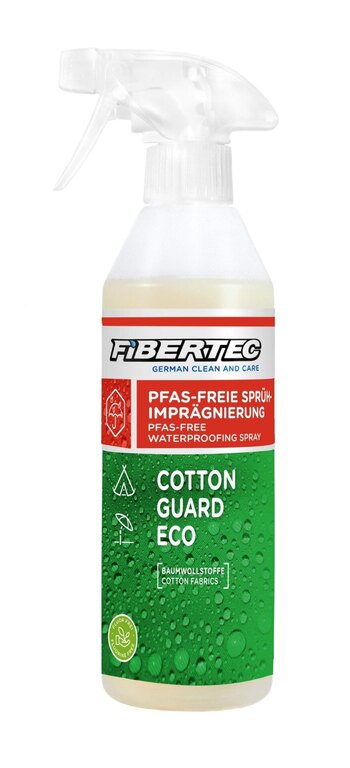 Cotton Guard Eco Fibertec je impregnace určená pro bavlněné materiály s podílem bavlny alespoň 50 %. Vhodná je zejména pro skautské stany, plachty, jurty, slunečníky nebo další vybavení z bavlny, kde pomáhá zvýšit odolnost vůči vodě i UV záření.