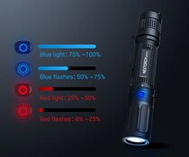 Svítilnu můžete ovládat pomocí kovového spínače v její zadní části, který usnadňuje manipulaci se svítilnou jen jednou rukou. Tento spínač slouží pro přepínání mezi čtyřmi režimy – třemi režimy klasického osvětlení (nízkým, středním a vysokým) a stroboskopem s variabilní frekvencí, s logickým a intuitivním ovládáním.