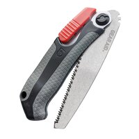 Rukojeť je měkce texturovaná a ergonomicky tvarovaná, takže pilka padne do ruky a drží pevně i v rukavicích nebo za deště. Stabilní úchop zvyšuje kontrolu nad směrem řezu a bezpečnost při práci. Texturovaný povrch zároveň snižuje únavu ruky při delším řezání a umožňuje přesnou manipulaci i s tvrdším dřevem nebo silnějšími větvemi.