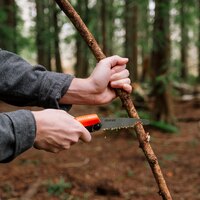 Kompaktní velikost a nízká hmotnost umožňují pilku snadno uložit do batohu nebo připnout pomocí odolného pouzdra s popruhy a klipem na opasek. Pilka je připravená k okamžitému použití vždy, když potřebujete připravit palivo, upravit tábořiště nebo provést menší úpravy přírody. Pouzdro chrání čepel při transportu a přenášení.