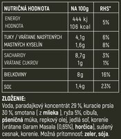 Chicken Masala spojuje jemné kousky kuřecího masa, smetanu a směs indického koření do vyvážené kombinace chutí, která potěší i po dlouhém dni v přírodě. Kdo má rád pořádné jídlo s vůní dálky, bude spokojen od prvního sousta.