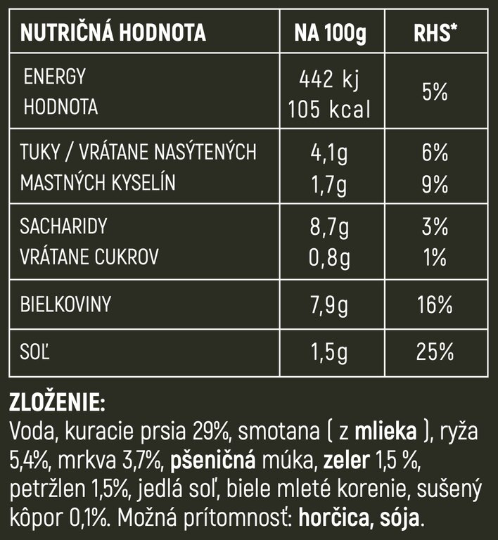 Krémové kuřecí s rýží a koprovou omáčkou v samoohřevné konzervě. Stačí aktivovat ohřev a během pár minut máte na stole poctivou porci, která zasytí a dodá sílu. Bez ohně, bez vody, bez starostí – ideální společník na cesty, do práce i do přírody.