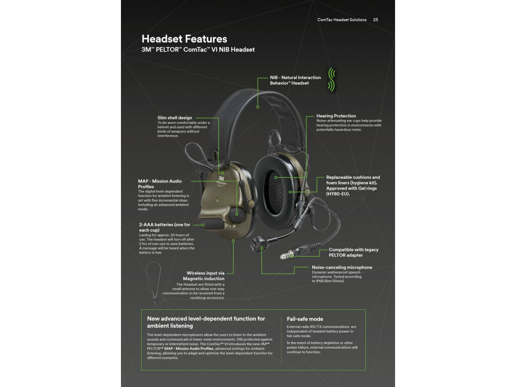 Vyzkoušeno podle vojenských norem MIL-STD-810G, MIL-STD-461G, podle regulace EU pro osobní ochranné pomůcky 2016/425, podle směrnice pro elektromagnetické emise 2014/30/EU, podle směrnice pro zařízení vysílající rádiové vlny 2014/53/EU a podle směrnice RoHS 2011/65/EU o zakázaných nebezpečných látkách v elektrických a elektronických zařízeních