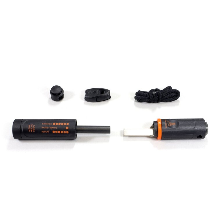 Nouzový podpalovač je vybaven šňůrkou pro zavěšení, takže ho budete mít stále po ruce, a nouzovou píšťalkou využijete pro rychlé upoutání pozornosti. Plastový materiál těla podpalovače je lehký a kompaktní, takže ho snadno připevníte k batohu nebo můžete nosit v kapse. Kombinace těchto vlastností z něj činí spolehlivou součást výbavy na túry, do hor i na expedice, kde záleží na každém gramu váhy i spolehlivosti vybavení.