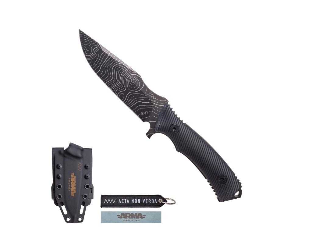 Součástí balení je samosvorné Kydex pouzdro s logem Arma. Umožňuje bezpečné nošení, rychlé tasení i snadnou údržbu. Nůž v něm sedí pevně a jistě, ať už ho máte u opasku nebo připevněný na výstroji. Pouzdro doplňuje brousek a klíčenka ANV – protože když máte mít kompletní výbavu, tak pořádnou.