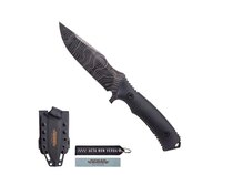 Použitá ocel Sleipner patří mezi tvrdé, houževnaté materiály, které zvládnou i drsnější zacházení. Povrch čepele zdobí laserem gravírovaný reliéf mapy Everon, připomínající, odkud tenhle nůž pochází. Ostří je přesně broušené a díky své geometrii se chová spolehlivě při řezu, sekání i jemné práci. Každý detail má svůj důvod – nic navíc, nic zbytečně.