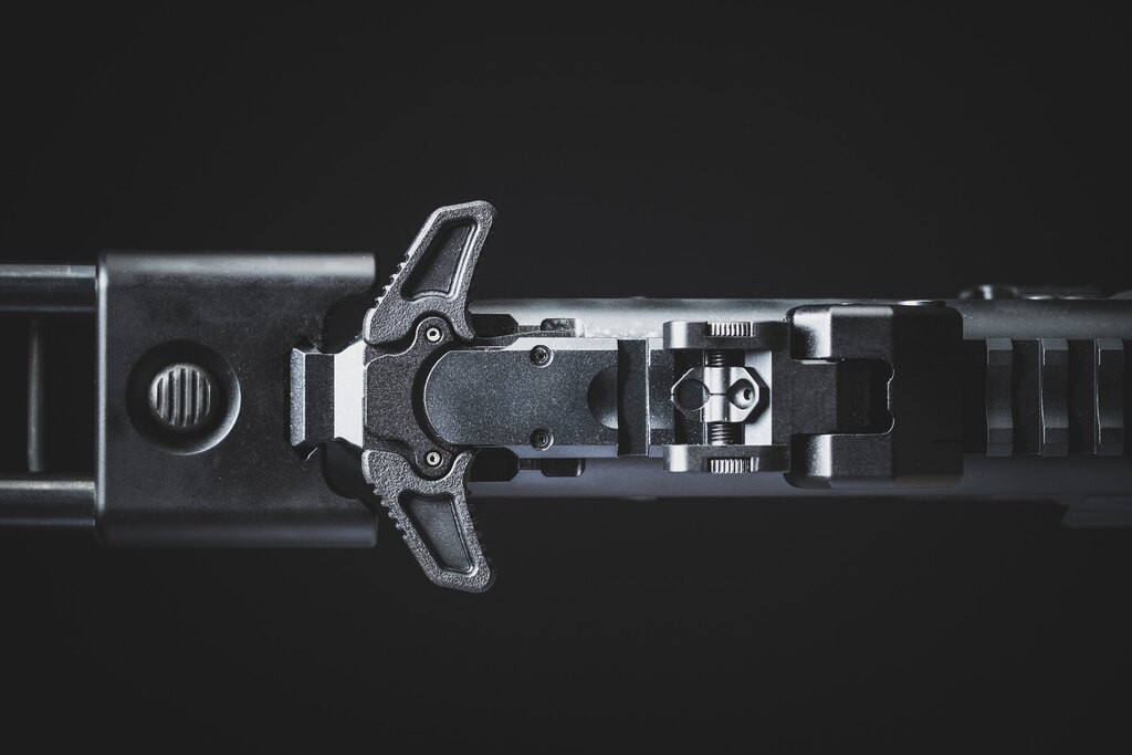 Natahujte dlaní („palm-blade“), palcem a ukazováčkem, klasicky — pákou se manipuluje stejně z obou stran a bez zdržení. Oboustranný tvar eliminuje potřebu přesouvat ruku nebo přehmatávat, jde to bez zbytečných pohybů. Pro střelce, kteří mění pozice nebo střílí se zbraní z levé strany, je to zásadní výhoda. V praxi to znamená rychlejší reakce a jistější ovládání.