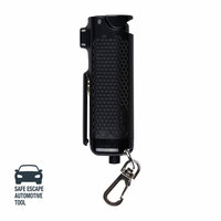 Obranný sprej Sabre Red Safe Escape 3v1 Auto Tool je nejen obranný pepřový sprej. Je to výborný nástroj zajišťující rychlý a bezpečný únik z automobilu při nehodě. Řezák během několika sekund přeřízne zaseklé bezpečnostní pásy a odolný, pevný hrot z nerezové oceli rozbije velmi rychle okénko bez obav ze zranění. Je to super pomocník pro bleskový a pohodlný únik z havarovaného automobilu, je tedy vhodný pro širokou veřejnost. Obranný sprej v případě nenadálého útoku spolehlivě ochrání před násilníkem, zlodějem nebo kýmkoli s nekalými úmysly. Nádobku snadno připojíte pomocí zacvakávací karabinky na klíče nebo na batoh či na tašku a snadno odpojíte, když nástroj nejvíc potřebujete.