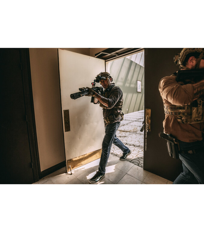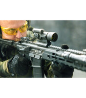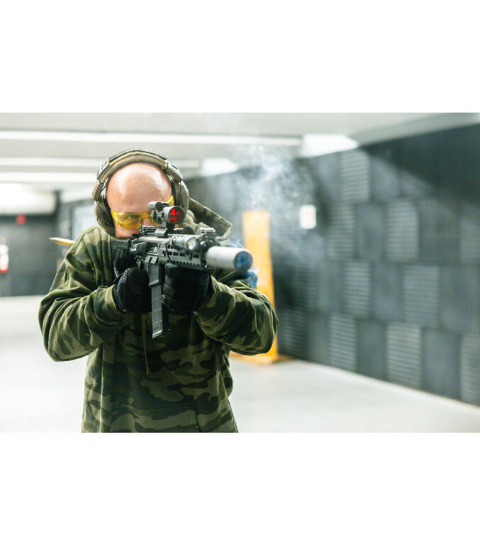 Polykarbonátový skelet je lehký, přitom pevný a odolný proti nárazům. Obepíná zrak ze všech stran, takže nic nevypadne z periferního vidění. Zkosený horní okraj přidává extra krytí shora, zatímco bezrámová konstrukce ponechává volné pole pohledu.