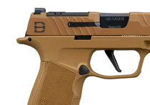 Závěr využívá integrovanou expanzní komoru v kombinaci s 3,7" hlavní. Toto řešení je navrženo pro omezení zdvihu hlavně a lepší kontrolu při dynamické střelbě. Konstrukce zachovává vyvážení typické pro platformu P365 a podporuje konzistentní výkon při rychlých sériích výstřelů.