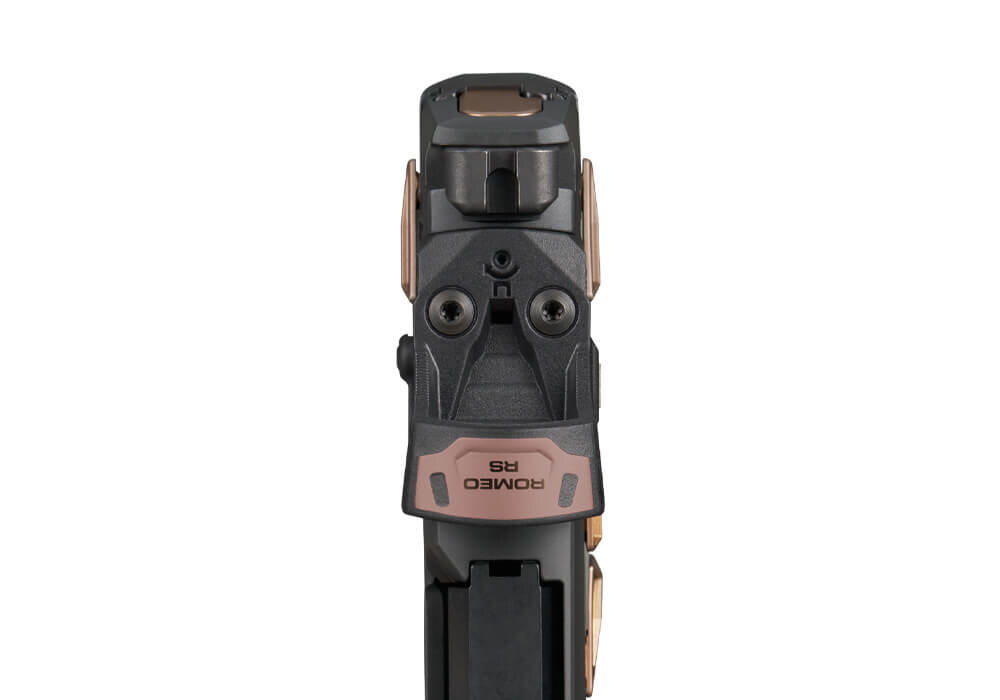 Závěr je osazen kolimátorem ROMEO-RS Compact s 3 MOA tečkou. Optika využívá asférickou skleněnou čočku s minimalizovaným zkreslením a nabízí 8 úrovní jasu ovládaných bočním tlačítkem. Výdrž baterie dosahuje až 20 000 hodin provozu. Konstrukce umožňuje rychlé zamíření a stabilní obraz při střelbě.
