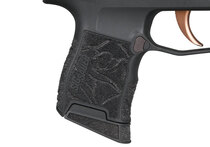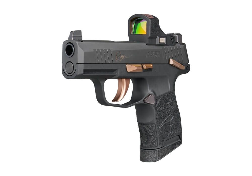 Rukojeť je opatřena laserovým gravírováním ROSE. Ergonomie platformy P365 zůstává zachována, což umožňuje jistý a komfortní úchop. Pistole je osazena XRAY3 denními/nočními mířidly pro použití za různých světelných podmínek.