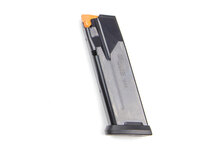 P365 XMACRO COMP používá ocelové dvouřadé zásobníky s kapacitou 17 nábojů. Součástí balení jsou dva 17ranné zásobníky s výrazným podavačem (high visibility follower) pro snadnou vizuální kontrolu vybití. Konstrukce zásobníku umožnila dosáhnout této kapacity při zachování úzkého rámu a přibližně 1" šířky zbraně.