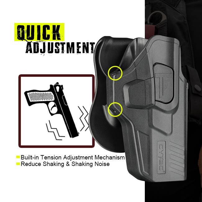 S protiskluzovým povrchem na tlačítku bude hledání a namáčknutí tlačítka pro uvolnění zbraně snadné i v náročných chvílích. Vyzkoušejte toto vylepšené pouzdro a zažijte maximální výkon a spolehlivost ve vaší osobní obraně.
