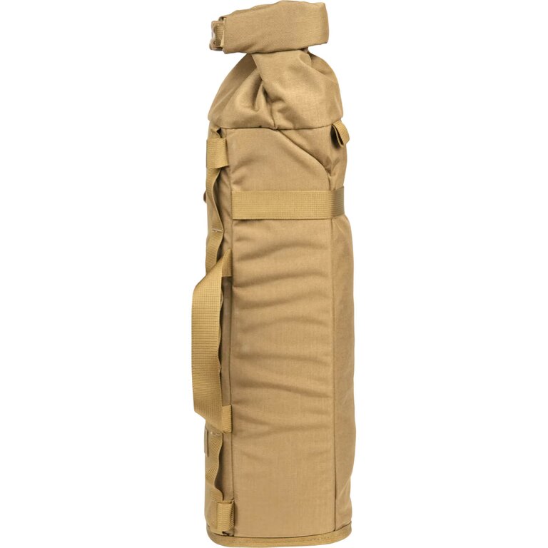 Pouzdro Mystery Ranch Spotting Scope Sling je tedy primárně určeno pro přepravu a uložení pozorovacích dalekohledů, a to až do průměru 80 mm. Uložený dalekohled může být rovný či zakřivený (díky flexibilnímu roll-top víku) a přenášet kromě něj můžete dokonce i tripod, tedy trojnožku. Pro tu slouží speciální vnější vázací popruhy.