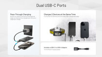 2 USB porty typu C: výstup - 5 V, 3 A / 9 V, 2,22 A / 12 V, 1,68 A / 10 V, 2,25 A (max výkon 22,5 W); vstup - 5 V, 2 A / 9 V, 2 A (max výkon 18 W)
