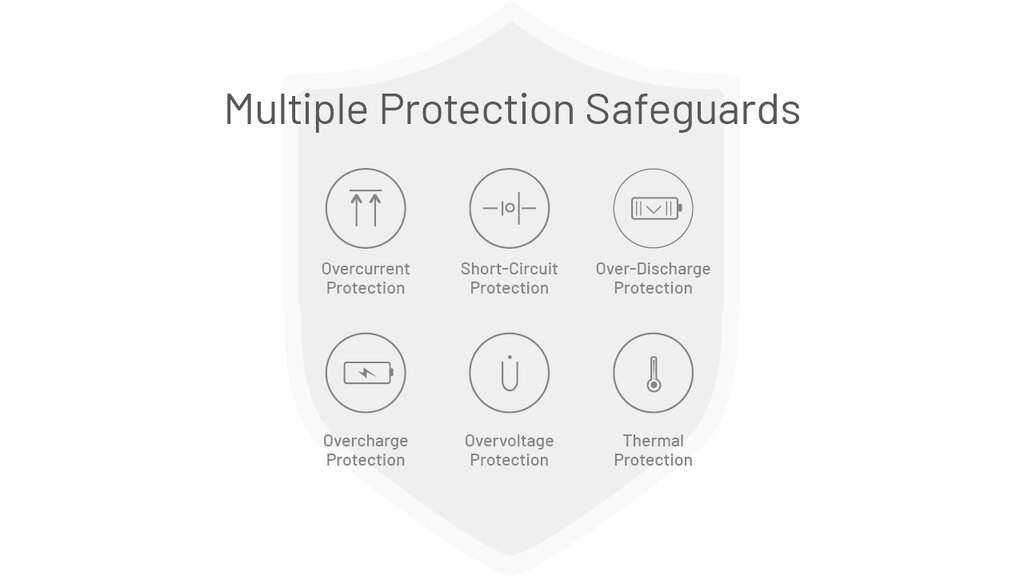 Bezpečnostní ochrany - proti zkratu, přepětí, nadproudu, přehřátí, přebití i nadměrnému vybití