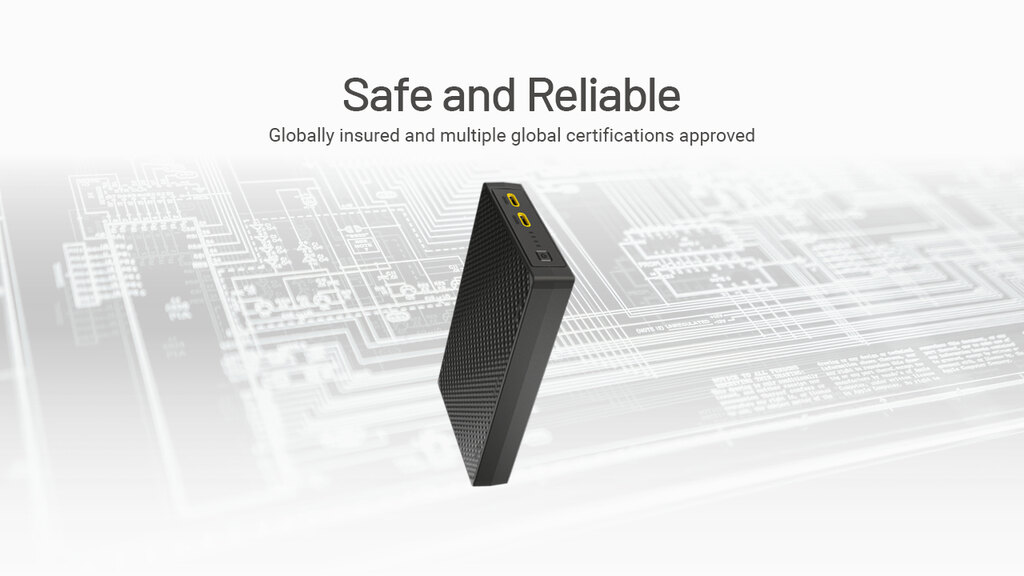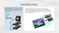 2 USB porty typu C: výstup - 5 V, 3 A / 9 V, 2,22 A / 12 V, 1,68 A / 10 V, 2,25 A (max výkon 22,5 W); vstup - 5 V, 2 A / 9 V, 2 A (max výkon 18 W)