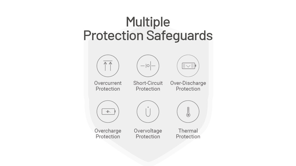 Bezpečnostní ochrany - proti zkratu, přepětí, nadproudu, přehřátí, přebití i nadměrnému vybití