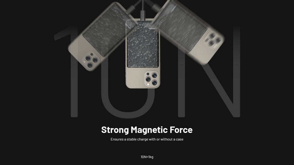 Silné magnetické pole spolehlivě drží zařízení (i s krytem) při bezdrátovém nabíjení (síla 10 N udrží cca 1 kg)