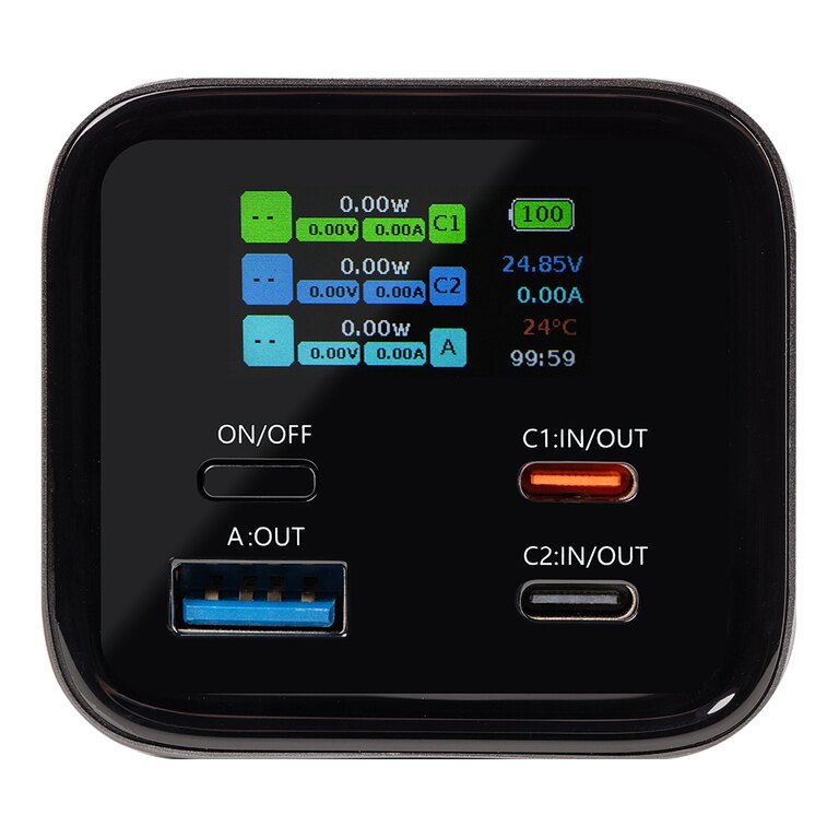 Integrovaný TFT displej zobrazuje aktuální stav baterie, vstupní a výstupní výkon i průběh nabíjení. Máte tak neustále kontrolu nad tím, kolik energie zbývá a jak rychle se zařízení dobíjí.