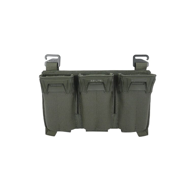 Přední panel Pincer Placard od Agilite řeší přesně to, co většina elastických sumek neumí: rychlou manipulaci jednou rukou bez rizika, že zásobník skončí na zemi. Díky trychtýřovitým polymerovým vstupům se zásobník navádí sám, bez zadrhnutí a bez hluku. Drží pevně, ale nebrání pohybu, když je potřeba jednat rychle. Nízký profil, promyšlená konstrukce a kompatibilita s prakticky jakýmkoli nosičem plátů dělají z tohoto panelu řešení, které funguje v reálu, ne jen na fotkách.