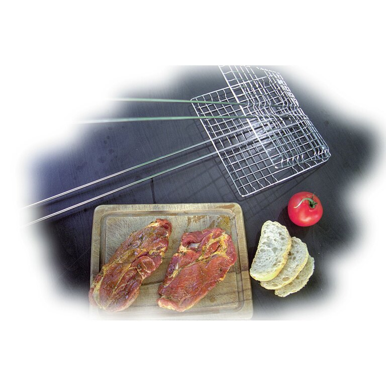 Dlouhá rukojeť (75 cm) umožňuje bezpečnou manipulaci nad ohněm a dostatečný odstup od žáru. Konstrukce je jednoduchá, funkční a připravená na rychlé použití bez složité přípravy.