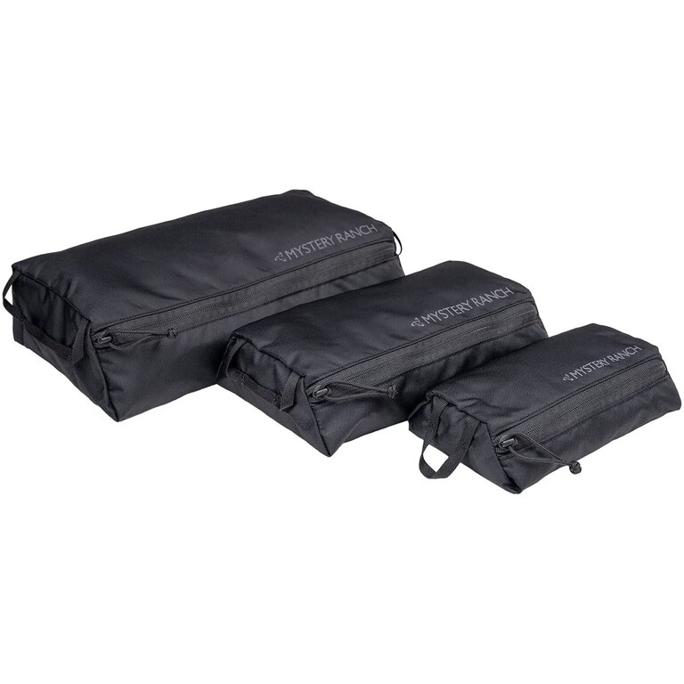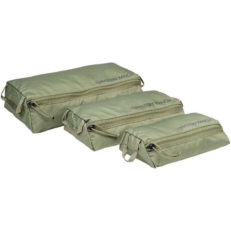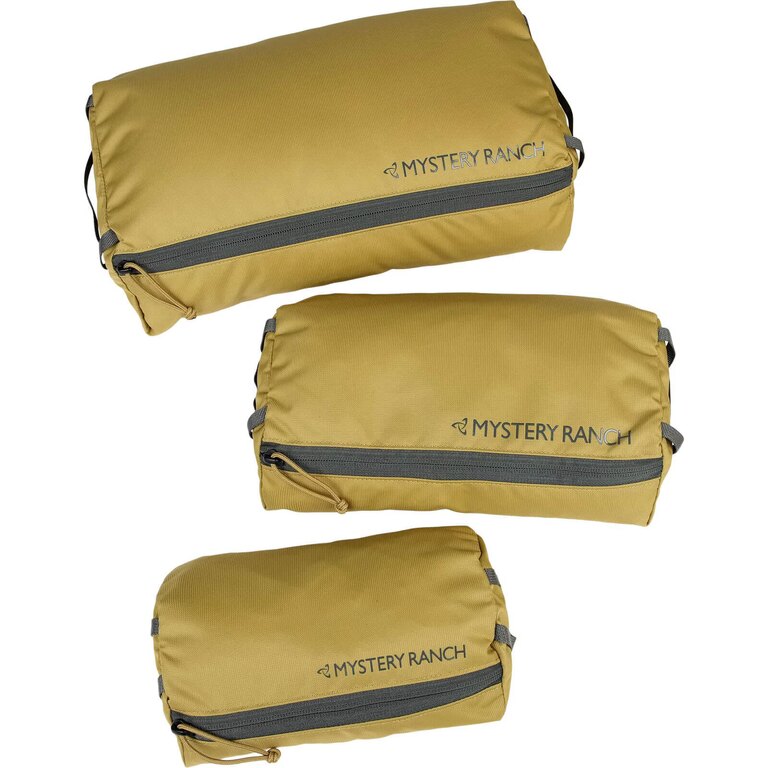 Materiál je pevný a voděodolný, s robustními švy a kvalitními zipy, aby tašky zvládly každodenní používání a časté přenášení. Konstrukce značky Mystery Ranch je navržena pro dlouhou životnost a spolehlivost v terénu, takže set vydrží i náročné podmínky, ať už je používáte samostatně, nebo jako součást většího batohu.