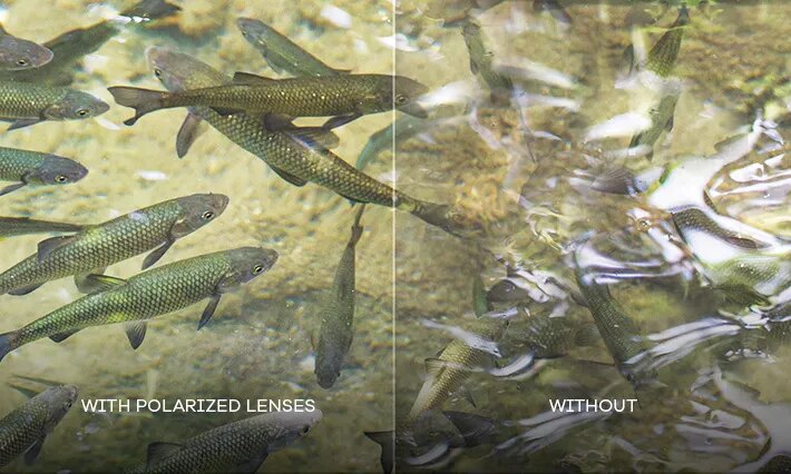 Speciální čočky dokážou vyrovnat spektrum viditelného světla a tím zpřesnit vnímání barev. Zelenou barvu navíc zvýrazní, zatímco odraz modrého světla od vody potlačí. Výsledek? Čistší obraz a méně únavy pro oči.