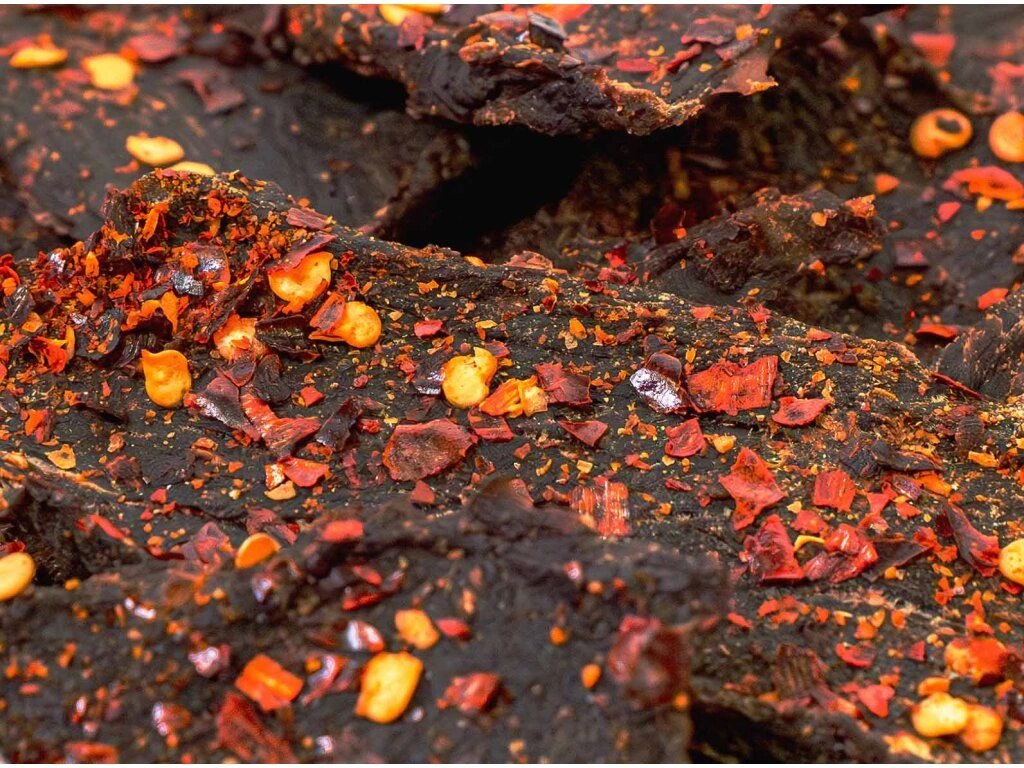 - sušené hovězí maso (beef jerky) s příchutí ohnivé salsy