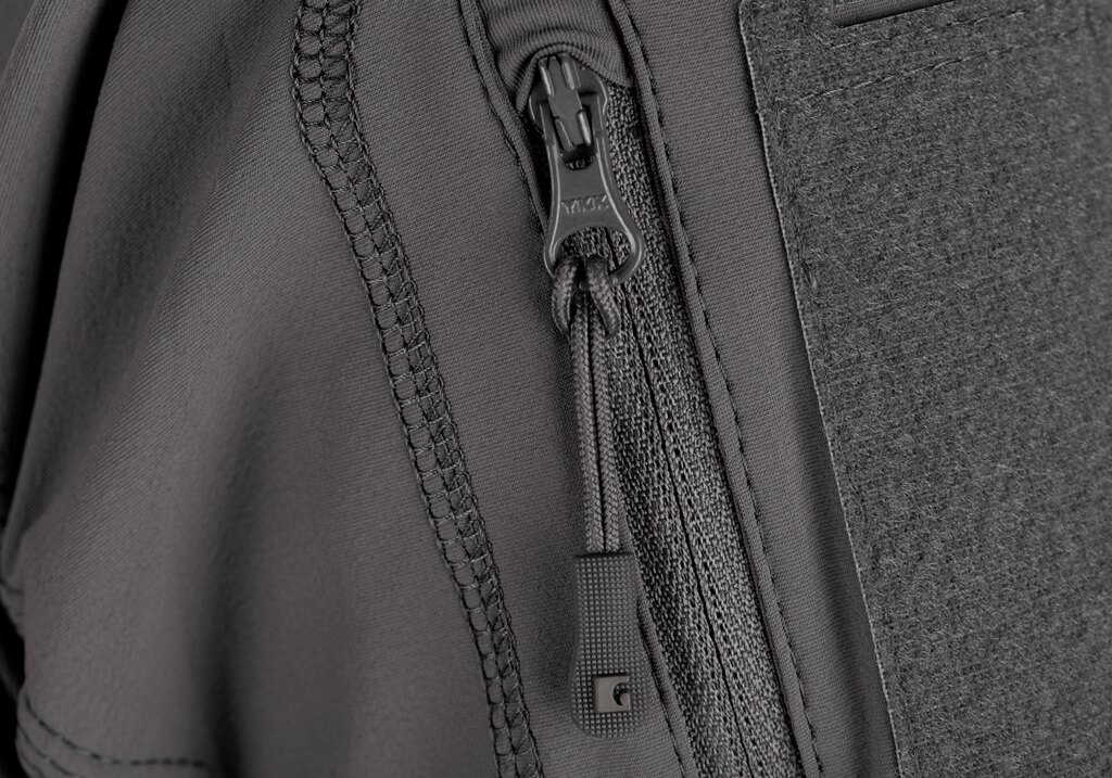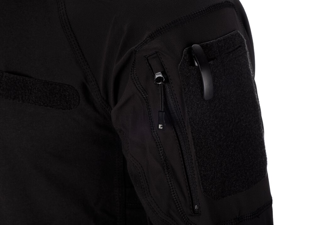 Technický střih rukávů, odolný, pružný a vodoodpudivý materiál zaručují extrémně vysokou volnost pohybu. Na obou bicepsech jsou umístěny velcro panely pro umístění nášivky, nebo ID označení. Podél nich najdete prostorné vertikální kapsy. Jsou osazeny kvalitními YKK zipy s táhly, takže je lze ovládat i v rukavicích. Představují ideální místo pro uložení mobilního telefonu. V oblasti velcro panelů najdete i praktické sloty pro vložení psacích potřeb. Prodloužený zadní díl trička lze zastrčit do kalhot, nebo přetáhnout přes pas a nebude vám táhnout na záda ani při předklonu.