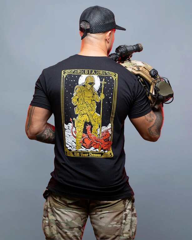 Brothers in Arms není o trendech, ale o principech. Je to značka pro ty, kdo chápou, že čest, disciplína a odhodlání nejsou fráze. Každý motiv má svůj smysl – a tričko Demons to říká jasně: pokud chcete růst, musíte nejdřív zničit to, co vás brzdí.