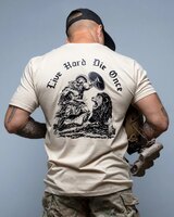 Tričko Die Once Brothers in Arms není pro ty, kteří hledají pohodlí. Je pro ty, kteří si všechno odmakají. Každé vlákno připomíná, že život není o jistotách, ale o odvaze. O tom, že se hraje na výdrž, ne na výmluvy. Kdo se nebojí bolesti, chápe, že skutečný smysl má jen to, co si člověk vydře.