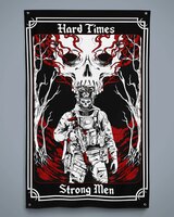 Na černém pozadí vlajky dominuje nápis Hard Times Create Strong Men, který připomíná, že každá výzva je příležitostí k růstu. Tento minimalistický, ale silný design osloví každého, kdo věří v tvrdou práci a disciplínu jako cestu k úspěchu.