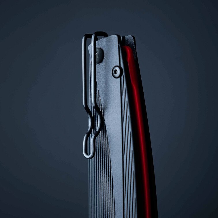 Nůž od českého výrobce je vybaven černým plovoucím backspacerem, který slouží jako opora pro dlaň a zároveň umožňuje připevnění paracordu nebo talismanu. Díky oboustrannému klipu lze nůž pohodlně nosit v kapse bez ohledu na to, zda jste pravák nebo levák.