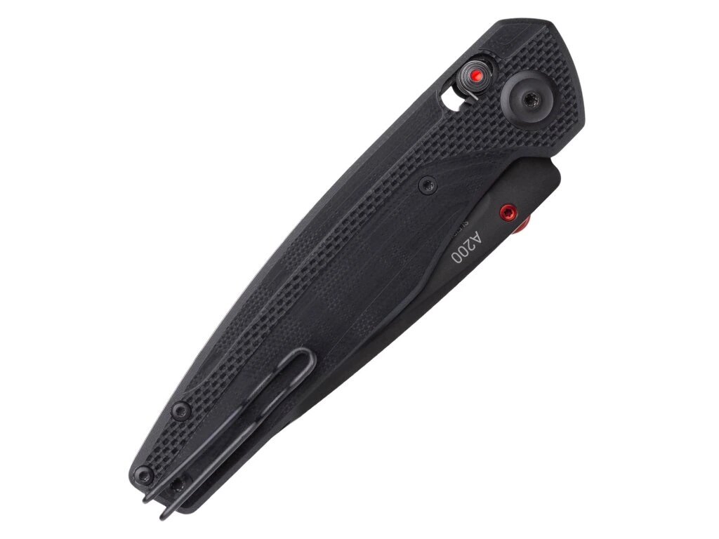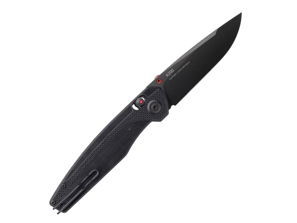 Nůž A200 BB je vybaven pojistkou A-Lock, která zajišťuje bezpečné uzamčení čepele v otevřené poloze. Tato pojistka je plně oboustranná a lze ji snadno ovládat i v rukavicích. Otevírání nože usnadňuje ANV tlačítko s integrovaným Lumidotem ze švýcarské Superluminovy, který zajišťuje viditelnost i za špatných světelných podmínek.