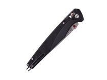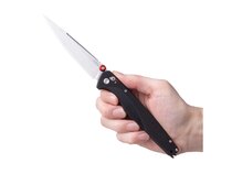 Rukojeť je osazena střenkami z černého materiálu G10. Tento materiál je lehký, pevný a běžně používaný u nožů určených pro každodenní nošení. Tvarování rukojeti umožňuje dlouhý a stabilní úchop bez nutnosti agresivní textury. Povrch je navržen tak, aby nůž držel jistě v ruce a zároveň se pohodlně nosil v kapse.