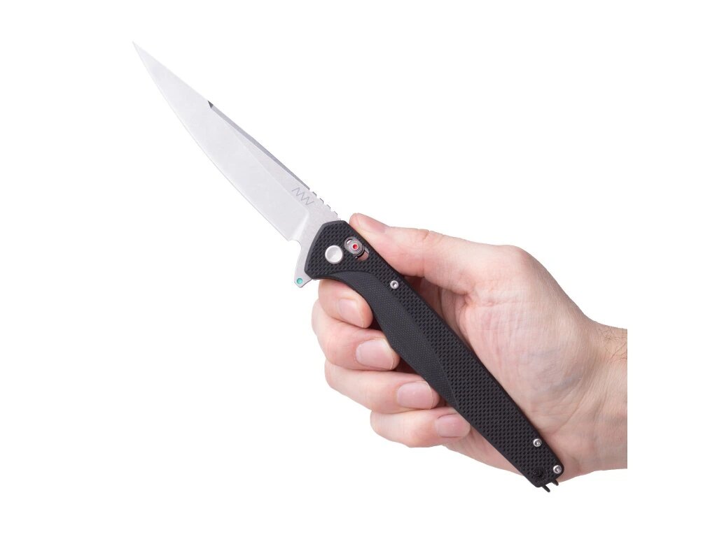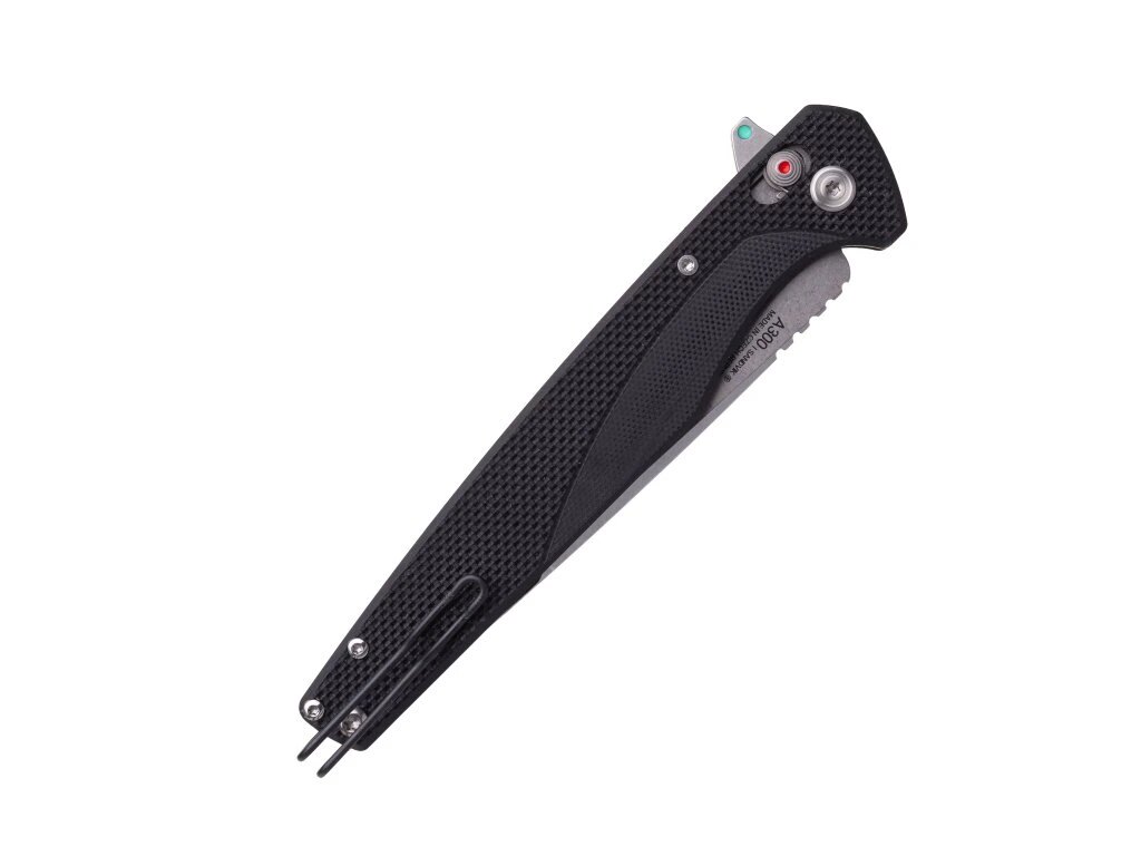 A300 je dostupný ve variantě s flipperem nebo s oboustranným kolíkem. V obou případech je možné čepel otevřít jednou rukou. Chod čepele je plynulý díky ložiskovému uložení. Jištění zajišťuje pojistka A-lock, která je standardem u nožů řady A a je navržená pro jednoduché a spolehlivé ovládání.