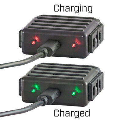 Svítilna využívá nabíjecí akumulátor SL-B2, který se dobíjí v přiložené stanici. V balení jsou hned tři kusy – jeden ve svítilně, dva připravené k výměně. To znamená, že TLR-6 HL zůstává připravená v akci bez čekání na nabíjení.